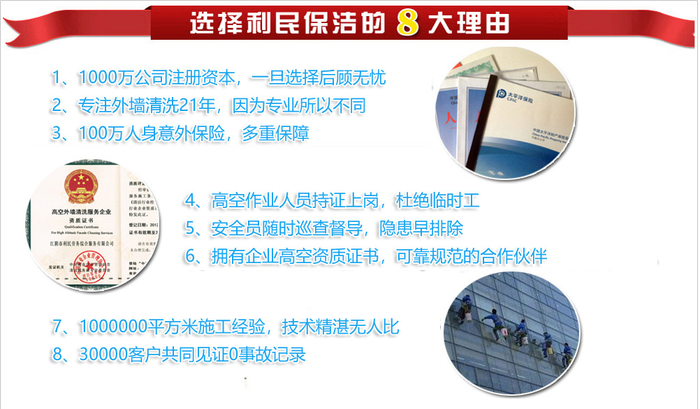![]() 利民,高空清潔行業(yè)的卓越領(lǐng)跑者。我們的外墻清洗業(yè)務(wù)包括:外墻清潔、外墻防水補(bǔ)漏、外墻涂料粉刷、LED樓體亮化工程高空安裝、外墻防水工程高空施工等系列高空作業(yè)項目,是物業(yè)公司、景觀工程公司、廣告公司、建筑、安裝公司、幕墻公司、各企事業(yè)單位等最佳高空作業(yè)服務(wù)專業(yè)供應(yīng)商.專業(yè)安全高效,承包高空外墻清洗,.專業(yè)的施工團(tuán)隊,所有人員均持證上崗,高空人員均購買100萬保險,21年1000000平方的外墻清洗經(jīng)驗,優(yōu)質(zhì)的服務(wù)..[詳細(xì)] 經(jīng)典案例更多 >